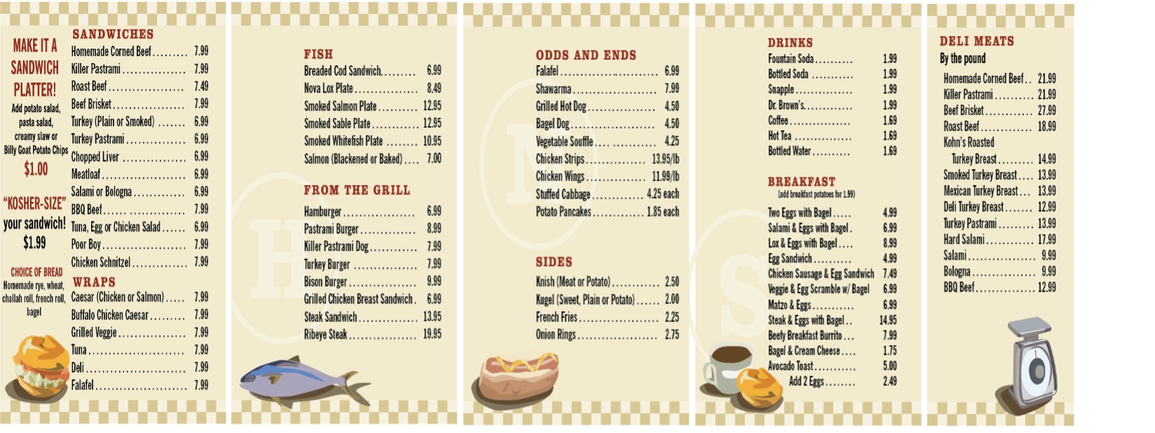 After the museum, the group will head over to Kohn’s Kosher Deli (10405 Old Olive Street Road, St. Louis) to enjoy lunch around 1:30pm that afternoon. To help speed up the lunch process, we’ve been asked to pre-order lunches. So if you’re planning on going, you will need to look at the menu (see below) and email your order to orders@kohnsfoods.com before June 19th. Please include your lunch order as well as your name and that you’re with the Quest group coming on Monday, June 19th. You will pay for your lunch at Kohn’s on the 19th.