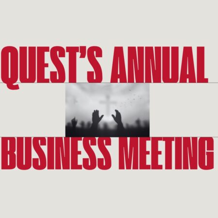 Today’s service is Quest’s annual business meeting. We’ll spend time in worship, looking back and looking forward to what God is doing in and through Quest, then we’ll take some time for church “business” and voting.